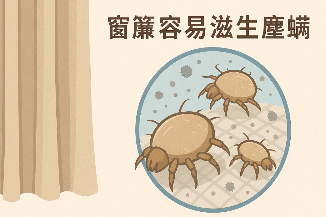 由於窗簾布料纖維密集,加上容易受潮與積灰塵,因此是塵螨的理想溫床。若未定期清潔,會持續釋放過敏原,對家人健康造成威脅。 -